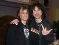 が、変更が幸いし、19時過ぎにNYのLaGuardia空港に到着することができた。開演時間には余裕で間に合う!まずはラッキ〜!(^o^) ★飛行機と言えば、空港のセキュリティチェック。去年の9月のUnited Forces Of Rock IIIの時に、「あ〜、Danger DangerのTシャツを着てない!」とSteveに言われたので、次回は絶対にD2のTシャツで行くと決めていた。今回は空港から会場に直行ということで、家を出る時からD2のTシャツ。しかも、前にクラシックロゴ、後ろにNaughty Naughtyなお姉ちゃんがいるTシャツを選んでしまった。セキュリティチェックでコートを脱いだらこのTシャツって、そこまで考えてなかっただけに、何かすご〜く恥ずかしかった・・・(^o^;) (帰りもこのTシャツのままだったので、再度恥ずかしい思いを・・・) ★LaGuardia空港にはNY在住のCheap Trickファンお友達が迎えに来てくれた。以前から「Danger Dangerが今度近辺でやる時はぜひ見たい!」と言ってくれていたのでお誘いしてみた所、「行く!」と。\(=^o^=)/ おまけに車で来てくれる事になった。余談だが、私のCheap Trickなお友達の中でD2を見に来てくれる事になったのは彼女が初めて。それが私にはどれだけ嬉しかったか・・・ 彼女は、D2はちょっと知っているが見た事はない。どうか初D2を楽しんでくれますように、気に入ってくれますように・・・ ★本来無なかったはずの時間にちょっとした寄り道をして(下の「おまけ・おまけ」参照)、NYC Downtownから車を飛ばずこと約1時間15分。21時45分頃、会場のDexter's Entertainment Complexに到着! ★高速道路沿いで、小さいモールなのか、たぶんRestaurantやNight Club系が多く入っているような建物(ビルではなく、低くて横長)の一角にDexter'sはあった。道を走っている時にサインが見えたのですぐにわかったのだが、ここのエリアに入る道がわからないまま行き過ぎてしまい、反対路線を戻ってきて、またUターンと思わぬ所で時間を食ってしまった。 ★車から降りたら、すっごい寒かった!Dexter'sの前には煙草吸っている人が数人。後で気付いたのだが、中は禁煙だったのではないか???(煙いと思った記憶もないような・・・) ★中に入ると、チケットを受け取った所で手の甲にスタンプを押された。(再入場チェック用と思われる。) 黒い固まりっぽくて美しくな〜い!と思ってよく見たら、お店のマークになってるネコが滲んでいた。(^o^;) ★入った所はダイニングエリアでカウンターとデーブル・ソファーがあり、すでにたくさんの人がいた。予想通り、Danger Danger大大大好きのRob Wylde(UKのBand : Teenage Casket CompanyのVocals & GuitarsでSong Writer、現在Boston近郊に在住のよう)の姿も。昨年の5月の"The 21st Annual NY KISS Expo & Hard Rock Convention"の時、GuestだったBruno & Steveの写真をこのSite用に送ってくれたお礼と共に、御挨拶をした。 ★MySpaceお友達でColumbus, OHからドライブで来るという人がいて(初D2!車で13時間くらい?かかるらしいが、このチャンスを逃したくなかったということで。)、何となく会場で会いましょう的な感じだったのだが、私が到着してすぐに声をかけてくれた。顔は知らせてなかったけど、日本人だったからだろう。Girlfriendといっしょで、彼女もとても気さくで感じの良い人だった。 ★奥に進むとフロアがあり、全体のスペースは長方形、一番奥にステージ、入口に右側にBarカウンター、フロア後方の右手にMerchandiseのテーブルがあった。(下の左端の写真、売っていたのは写真に写っている4種だけで新しいものはなし!) そこにはD2の地元でのShowをお手伝いしてくれているMikeがいて、2005年夏以来の再会となった。フロアは、このMerchandiseテーブルの所からステージを見た下の左から2番目の写真の感じでわかるかと思うが、けっこう大きい。これがもし後ろまでいっぱいだったらかなり熱〜く盛り上がるだろうな。 ★Mikeの話によれば、メンバーはサウンドチェックの後、この近くに住んでいるStarzのBassist、Georgeの家でDinnerを御馳走になっているので、今は会場にいないとのことだった。そう言えば、StarzのGuitarist、RichieのMySpaceから今晩ここでDanger DangerといっしょにPlayするというBulletin(お友達登録されている人全員に送られるMail)があったじゃないか! ★で、D2は何時に登場なのかと聞いたら、その時PlayしてたBand以外にあと2バンドやってからだって・・・(ToT) しぇ〜、あと1つかと思ったのに〜。どれだけ待てばいいのぉ〜 今までの経験から早くて23時とは思ってたから、21時35分Newark空港着の飛行機で間に合うと思ったわけだが、D2の前に3バンドもやるとは・・・(ToT) ★待っている間フロアにいるよりはとダイニングの方に戻った。フロアもきれいだったし、トイレもきれいだったので、ここって新しくできた所なのかしら等とお友達と話していると、先程のMySpaceお友達Jさんとその彼女Kさんが来て、4人でテーブルを囲む事ととなった。 ★程なく、フロアの方からRobが入ってきた!お〜、みんな戻ってきたのかしら?私達のテーブルにもちょっと来てくれたので御挨拶。予想通り、2月